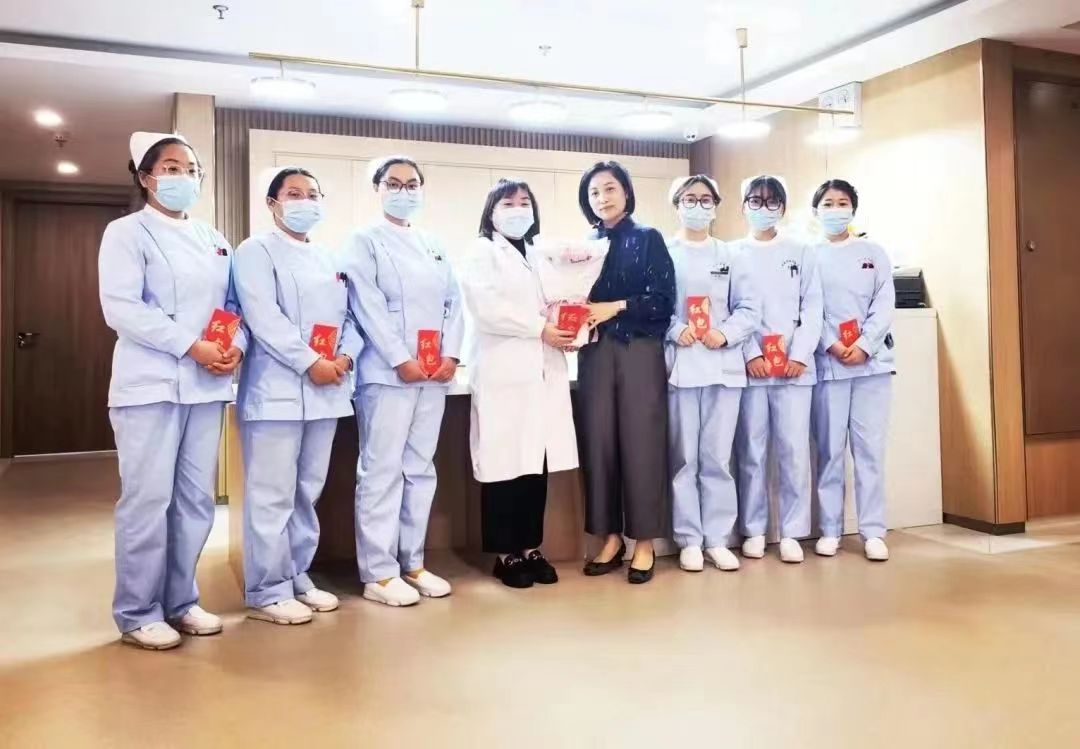 鄒曉燕院長、護(hù)理部主任葉紅為護(hù)理團(tuán)隊(duì)送上鮮花和祝福