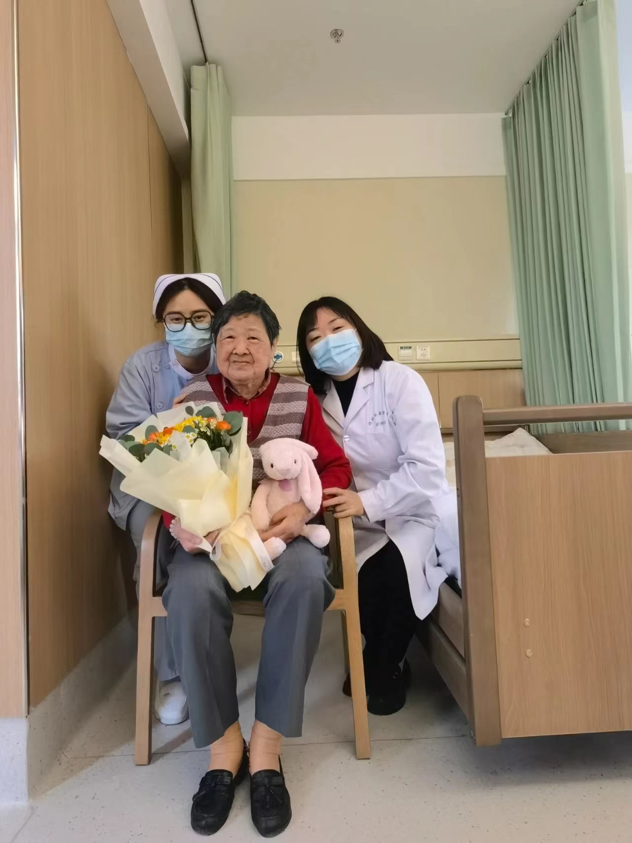 張奶奶在護(hù)理崗位上默默奉獻(xiàn)了35個(gè)年頭,護(hù)理部主任葉紅和常潔護(hù)士長一早就給奶奶送去節(jié)日的問候,張奶奶雙目濕潤,