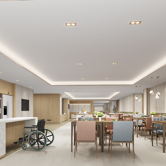 融入“比家更溫暖”的服務(wù)理念,既為長(zhǎng)者提供專業(yè)、適老的照料空間,也為長(zhǎng)者塑造更加舒適、靈動(dòng)的居住體驗(yàn)。設(shè)有閱讀區(qū)、書畫區(qū)、棋牌室等多功能活動(dòng)區(qū),各照料單元均設(shè)有就餐區(qū)及活動(dòng)區(qū),滿足老人共進(jìn)三餐、日常活動(dòng)及情感交流的需求。