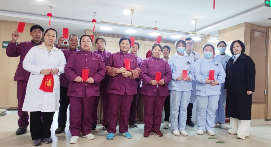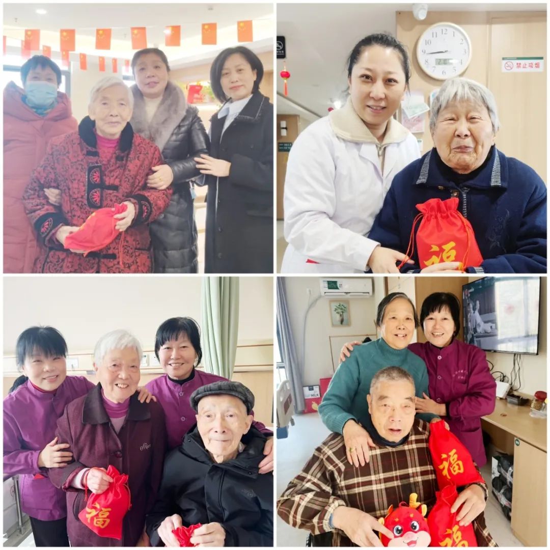 “祝您新年快樂、福壽安康!”院領(lǐng)導(dǎo)來到護理區(qū)向長者們送上“新春福袋”、龍年玩偶,用聲聲祝福和暖心關(guān)懷,與長者們分享過年的喜悅。