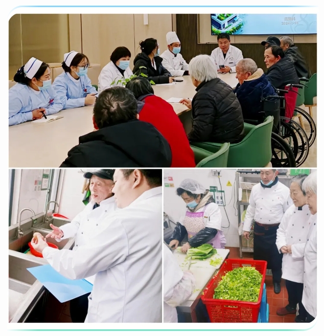 在院領導帶領下,綜合辦公室、后勤科、服務部、護理部、醫(yī)務科等6個部門,參加了每季度的膳食委員會。對長者們提出的問題都做出了積極回復,我們還邀請了膳食委員會的長者代表走進食堂,并按照長者提出的飲食需求進行改進。