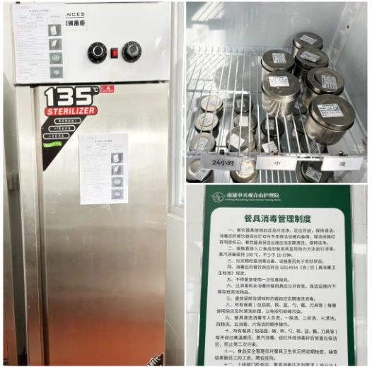 所有廚房工作人員持證(健康證)上崗,配備食品安全管理員,嚴格執(zhí)行餐具消毒工作規(guī)程,把好食品進貨關、貯存關、加工關;嚴格規(guī)范進出后廚制度,要求所有人員必須做好防護措施,確保個人安全;早中晚食品留樣48小時等。一項項精細化的品質管理,都是為了確保舌尖上的安全,讓長者們在院里能夠吃得安心、吃得放心、吃得開心!