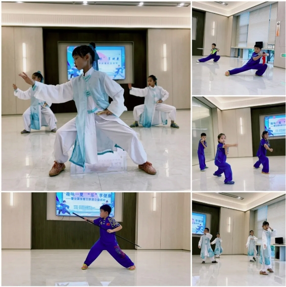 青少年們展示多種武術(shù)套路,包括太極拳、長(zhǎng)棍、劍術(shù)等,動(dòng)作剛?cè)岵?jì),充滿(mǎn)了力量與美感。